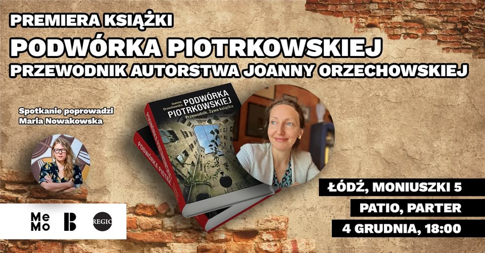 Już w najbliższy czwartek o godz. 18.00 zapraszamy do Mediateki MeMo (ul. Moniuszki 5) na spotkanie autorskie Joanny Orzechowskiej wokół książki "Podwórka Piotrkowskiej. Przewodnik. Żywa książka". Spotkanie, które poprowadzi Maria Nowakowska, odbędzie się w przestrzeni patio, czyli… dawnego …