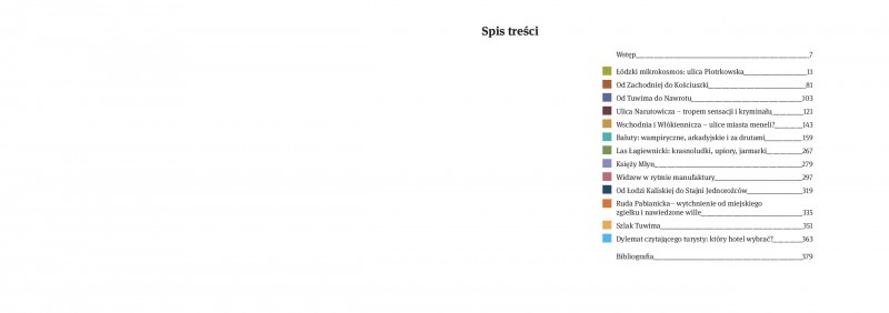 Trasy zostały tak skomponowane, by ich pokonanie zajęło spacerującym od jednej do dwóch godzin. Pierwsze szlaki wiodą do centrum, na Piotrkowską i w jej okolice, kolejne – na Bałuty, Księży Młyn, Widzew, a nawet na Rudę Pabianicką i do Lasu Łagiewnickiego. Przewodnik wieńczy „szlak hotelowy”, poprowadzony z myślą o turystach, którzy podczas pobytu w Łodzi chcieliby według lekturowego klucza wybrać miejsce noclegowe.